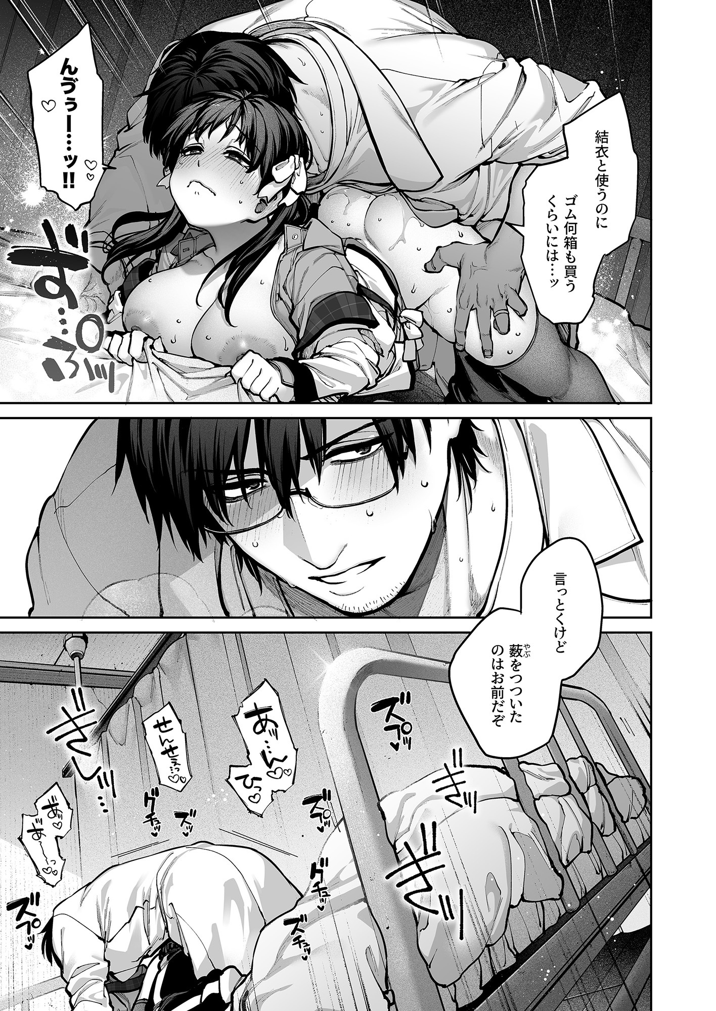 普段男性向けで活躍されている作者だけあって、体の描き込みや汁の表現、筋肉のリアルさが半端ありません。