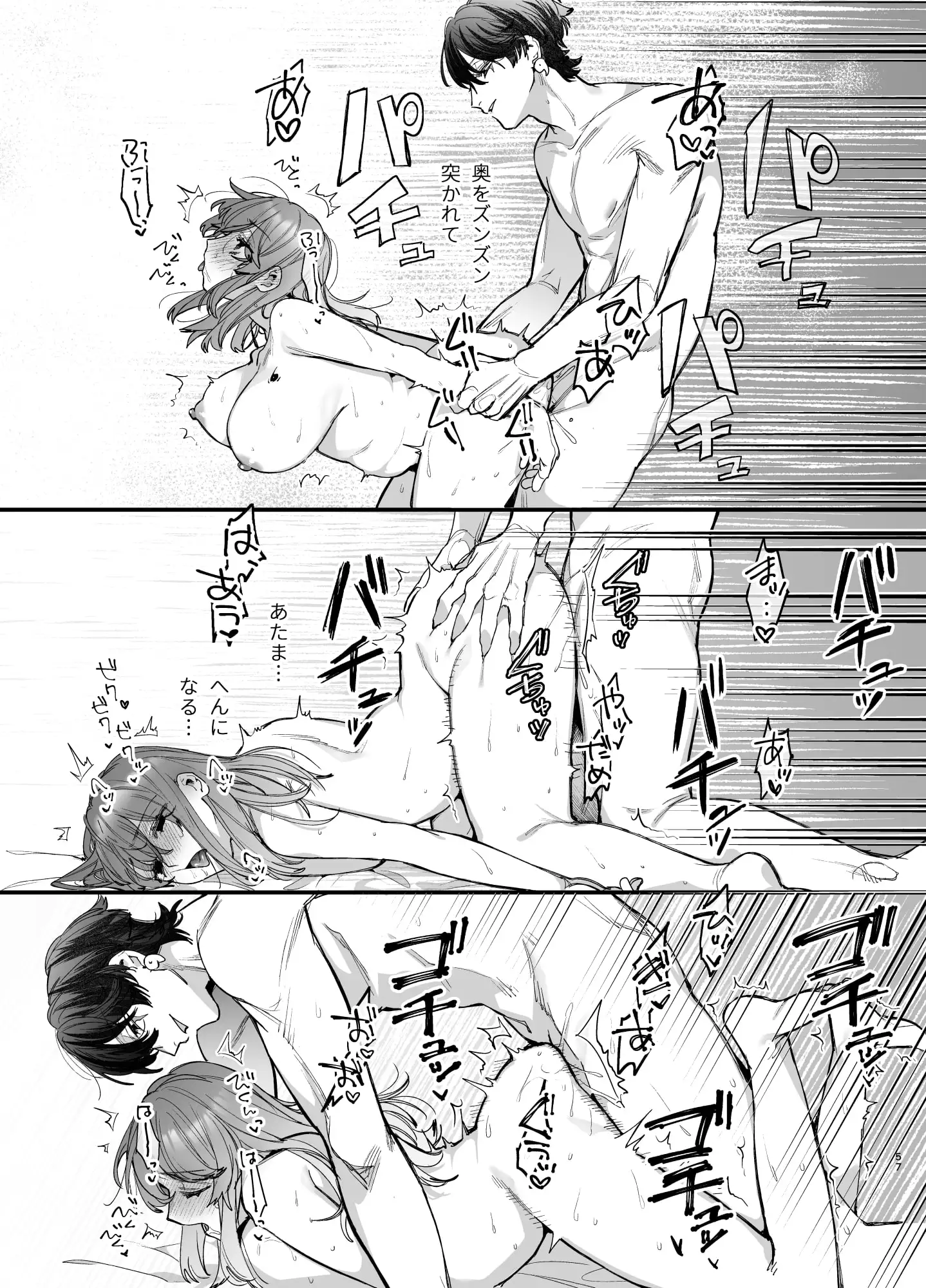 うめこっぺ先生の作画の魅力は、何と言ってもヒロインの肉感たっぷりな身体表現です。